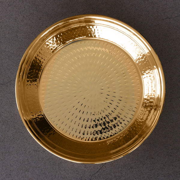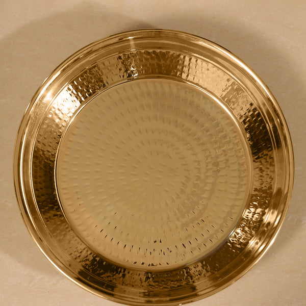 Enhance your kitchen with our beautifully hand-crafted brass paraat (pital paraat), a perennial addition to any Indian household. Precision made using high-end brass, this traditional paraat is perfect for kneading dough, mixing ingredients, and serving refreshments. Brass is revered for both its durability and requires minimal maintenance and its natural antimicrobial properties. If utilized correctly, a brass paraat is practically indestructible - it adds a splash of heritage, if not history, to your kitchen and lifestyle.