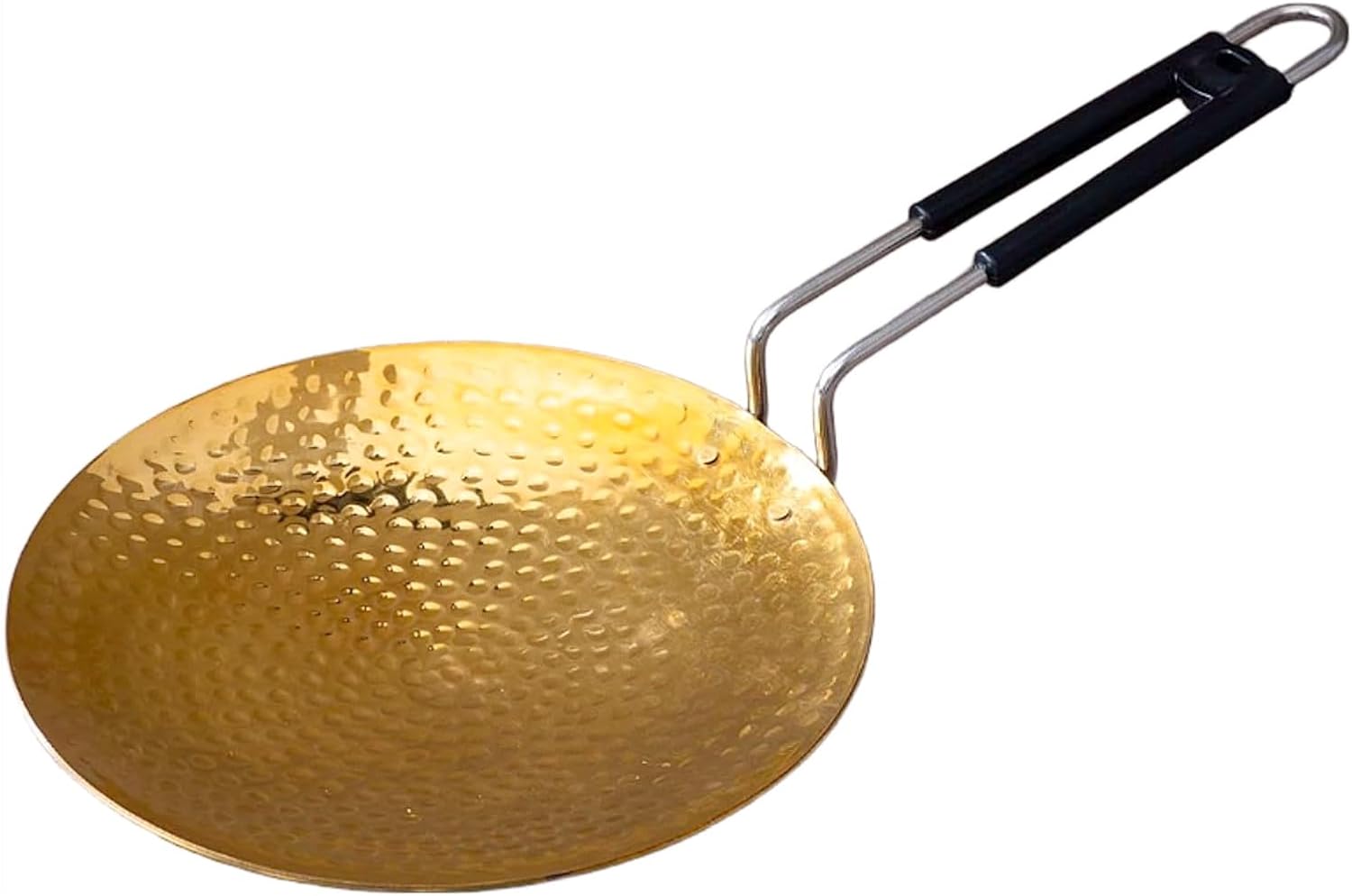 Perfectly suited for rotis, chapatis, parathas, and more, this brass tawa is an essential tool for anyone who loves authentic Indian cooking. With a heavy weight and solid construction, it will last for years. The comfortable handle provides a secure grip and easy control, which is perfect for cooking and flipping.