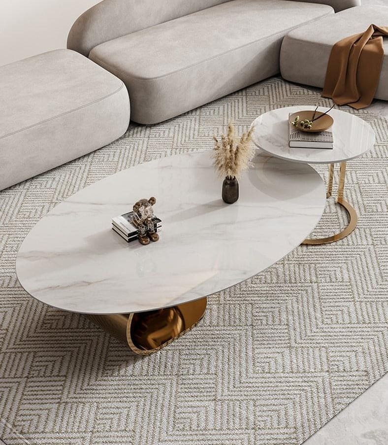 Browse our resourceful selection of center table for living room that are produced using high-quality materials, to deliver unbeatable durability. They are both, the sturdy metal design lifts the top surface above the floor, showing high stability, while the high-quality gold PVD finish adds a hint of sophistication to the room. Not to mention the one, whose finishes are on top as the imported oval marble.