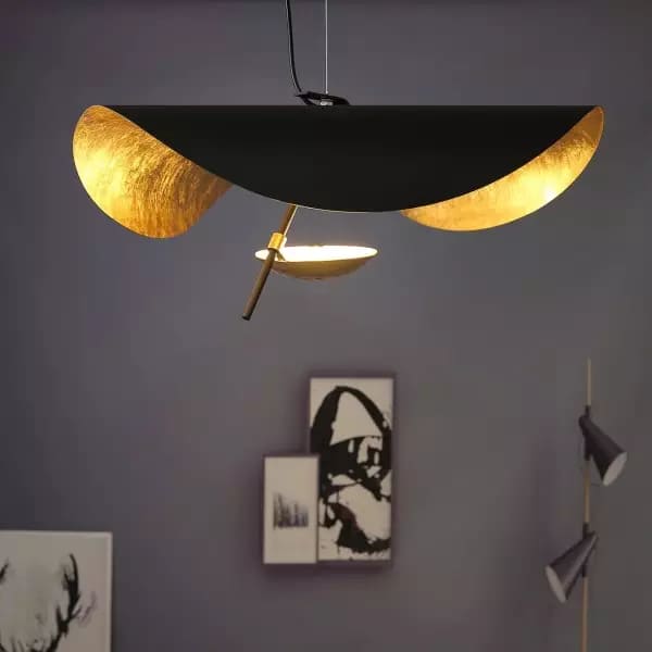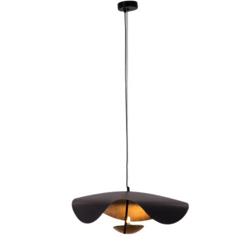 Introducing our striking black pendant lamp, a perfect fusion of modern elegance and warm ambiance. The lamp features a sophisticated black finish on the outside, exuding a sleek and contemporary aesthetic. Inside, a luxurious gold finish adds a touch of luxury, reflecting light beautifully to create a warm, inviting glow. This dual-tone design makes it an eye-catching piece that effortlessly enhances any room's decor.