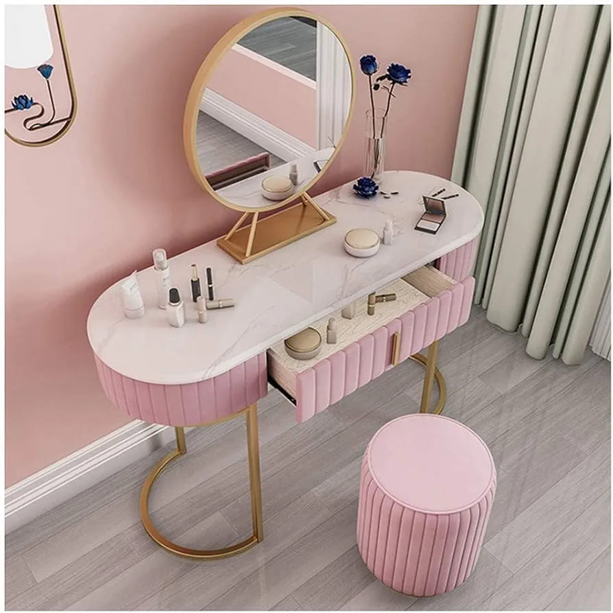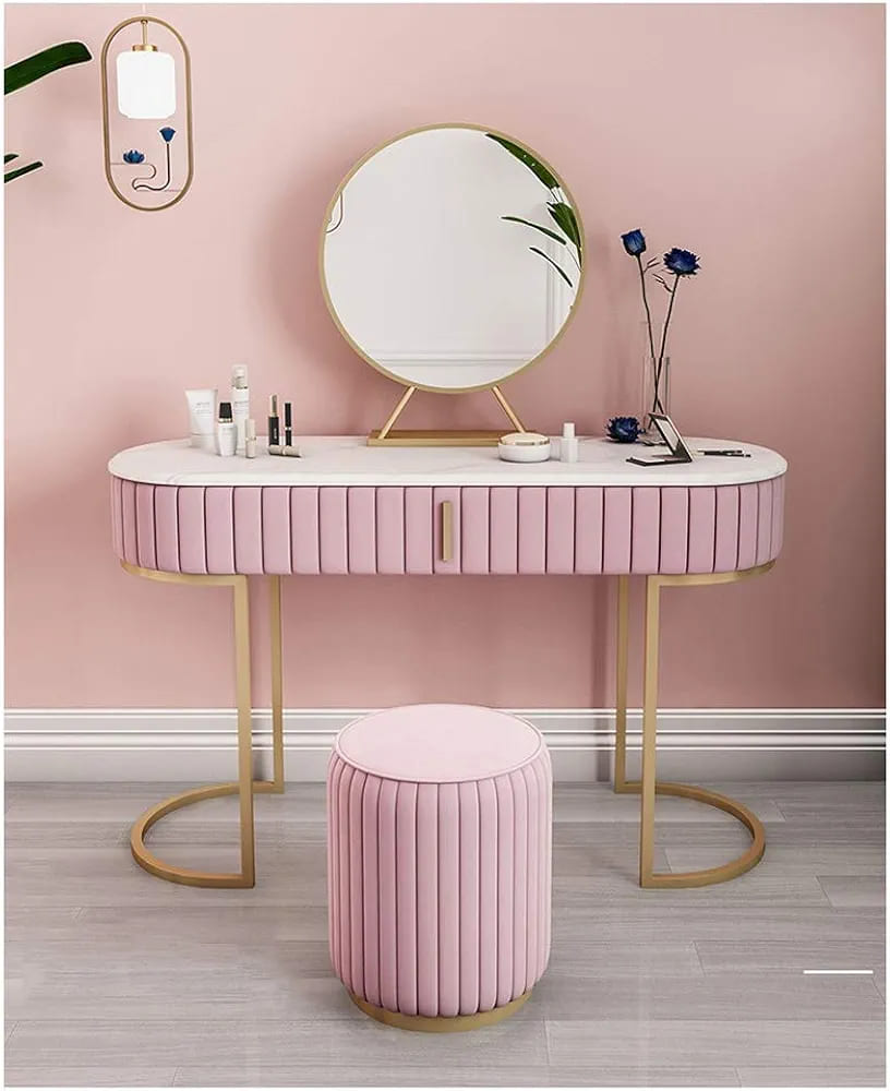 Upgrade your dressing area with this contemporary dressing table set, made to mix efficiency and elegance. This set includes a comfortable stool for increased convenience, a stylish console with a mirror, and a useful side drawer for neat storage.