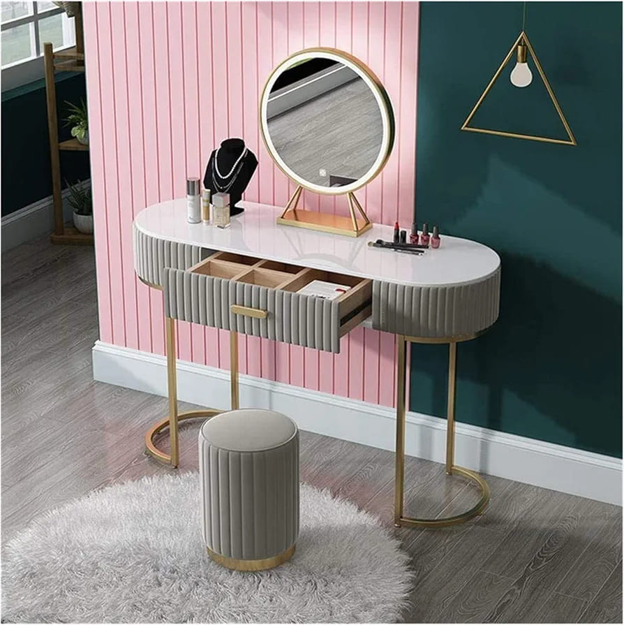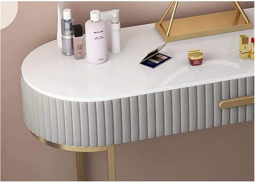 Upgrade your daily grooming experience with our elegant makeup table with mirror and stool, designed to bring functionality and charm to your space. Crafted for the modern home, this vanity set features a spacious tabletop, multiple storage compartments for cosmetics and accessories, and a high-quality LED mirror that ensures perfect clarity.