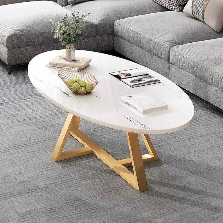 Introducing our Oval Marble Coffee Table in Gold, a sophisticated and eye-catching centrepiece that seamlessly blends modern design with timeless elegance. The table features a sleek gold-coloured base that adds a touch of refinement to your living space. Crowned with a luxurious White Marble top in an oval shape, this coffee table becomes a focal point, marrying contemporary aesthetics with opulent details.