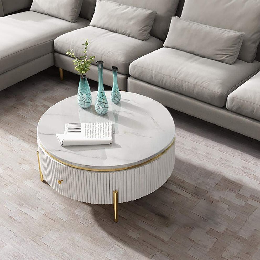 Introduce elegance and functionality to your living space with our round center table, featuring a luxurious white marble top that exudes timeless sophistication. The smooth marble surface offers a stunning contrast to the rich, natural tones of the wooden base, creating a perfect blend of modern and classic design elements.